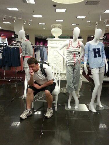 In Macy’s today I had a shop assistant come over and ask if I needed assistance. His eyes lit up when I said yes. “How can I help you Sir” he asked. “How can I get my girls out of this shop? “, after a chuckle he left me. So much for assistance.