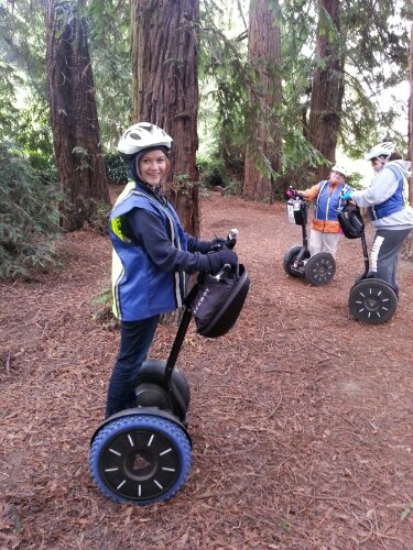 Here’s a picture of the girls in a young (only 100 years old) redwood forest having fun on the segways.