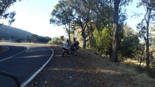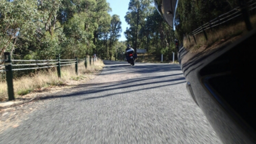 I was following a couple of BMW F800’s across the range and then all of a sudden one is sliding off the road with the second like a lemmings following him off the road (when things like this unfold in front of you it is real easy to watch what happens and follow rather than focus on what you are doing). The last thing I saw was one bike heading towards the rider on the ground before I went about the business of getting around the corner and not simply joining them.