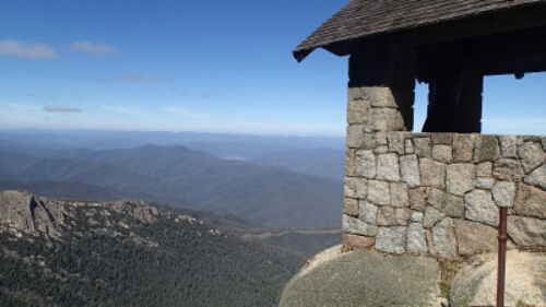 From our overnight stay in Tallangatta we headed south following some nice quiet back roads to Bright. From there we went up to one of my favourite places – the horn at Mt Buffalo. I know a number were wondering why we were going up this steep, loose and rutted road on big loaded road bikes. Once we rounded the final corner all became apparent.