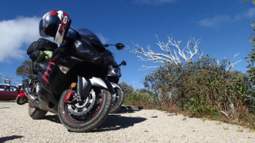 From Bright we climbed out of the trees and over Mt Hotham. This is a road that requires respect, steep drop offs, high winds, and a surface that I always find ‘interesting’ as the bike never feels sure footed. All that aside this is a great road with some amazing scenery.