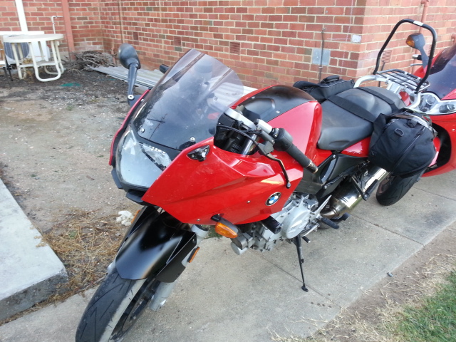 One silver F800 slid down a small ditch and was resting next to a tree. The red F800 went over the edge and was a couple of meters down the hill, upside down balancing on its handlebars and rack being held in place by a strategically placed tree which it was leaning against.
