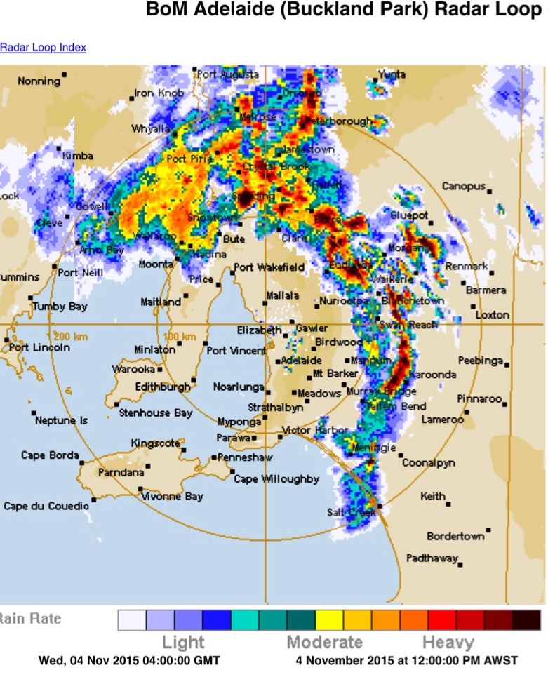Here is a screen shot of the weather radar. I was under the black patch near Burra (north east of Clare).