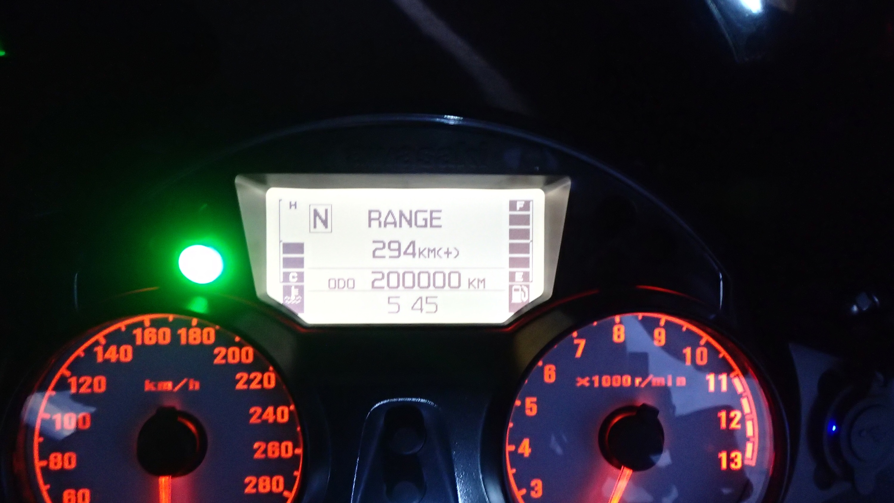 Just after my first fuel stop of the day the bike turned over 200,000km. It was fitting that it came up on such a ride and at sunrise.