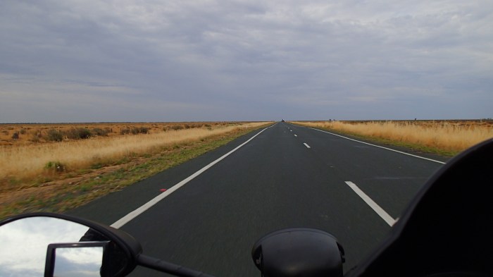 However heading west you are generally running into a head wind and today was no exception. This really plays havoc with the bikes fuel consumption. The fuel light came on earlier than expected and while I had 5 litres of fuel in the bag I decided to roll off slightly to conserve fuel and try to make it rather than have to stop twice. I must have been close to running out as I thought the tank only held 21 litres.