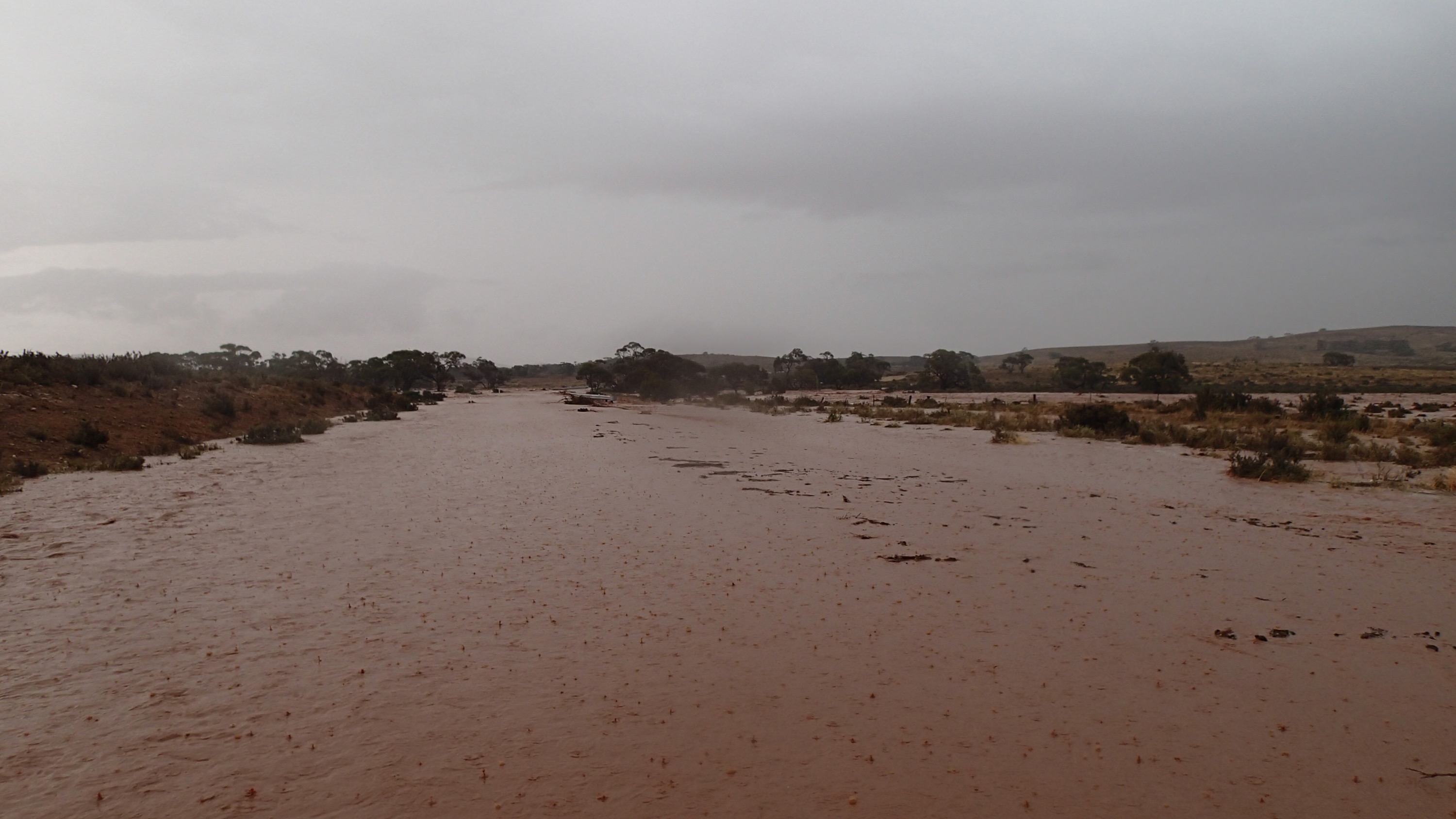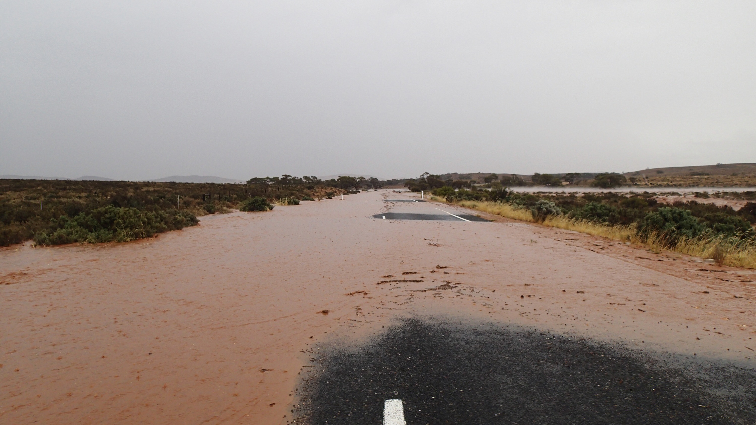 With the rain coming in sideways there was no place to hide. No chance of grabbing some sleep while waiting to see if the river would come down. Luckly a nice caravanning couple took pity on me and sheltered me and gave me coffee before I went down to test the waters as cars were now getting through.
