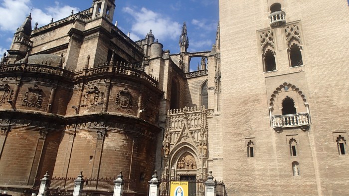 Cathedral which is the 3rd biggest is Europe. You ou can see the old Mosque (13th century in brick) and the newer Cathedral (15th century in stone).