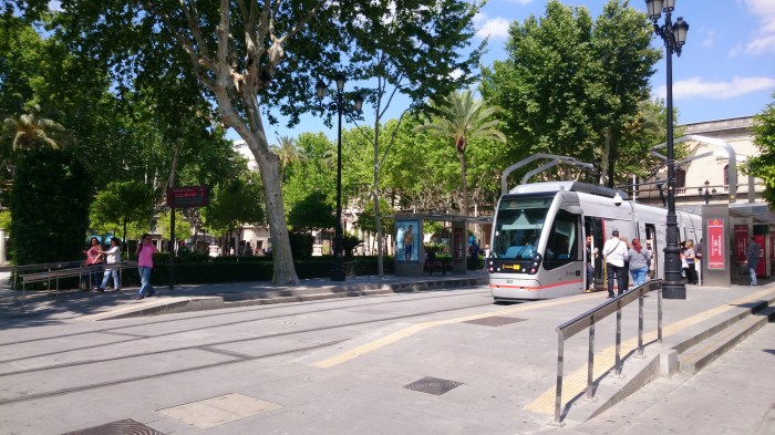 Sevilla is a beautiful city mixing the very old with the new, large parks, wide roadways with central gardens and beautiful trees, contrasted with cobblestone streets and narrow alley ways. Castles within walls, huge cathedrals, to architure from the last 500+ years from ornate buildings covered in beautiful ceramic tiles to more modern functional building (which look incredibly bland). It is quite amazing to see modern trams running down passed building that old. In fact you’d think this mixture of old and new would clash, but it doesn’t. Sevilla feels like a modern city that is showing off it’s past.