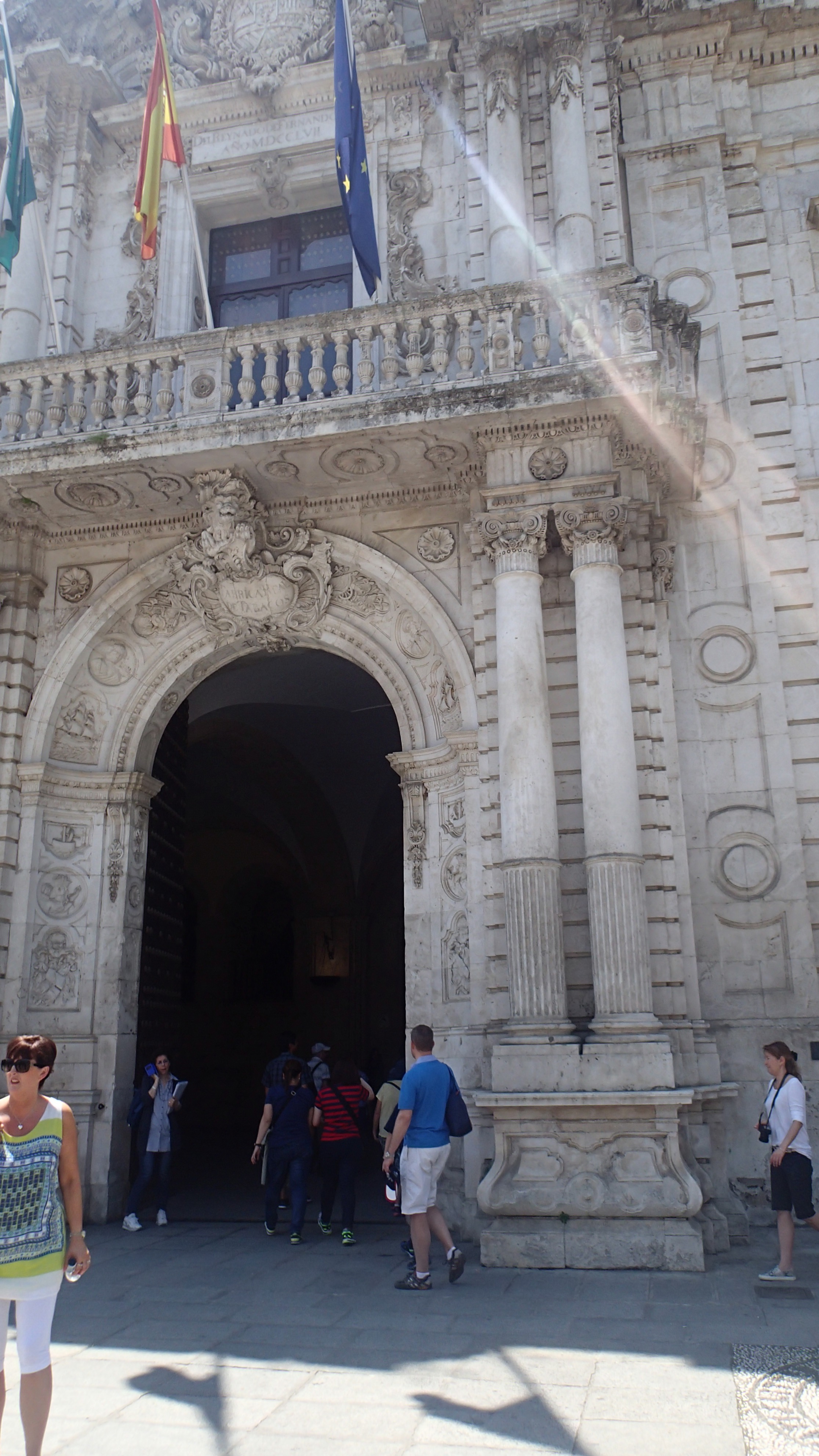 We had no set plans in Sevilla so we were looking at the hop-on hop-off bus option again but decided to go with a free city walking tour as it left from near where we were staying at 10:15am. What we didn’t realise at the time was that it went for over 3.5 hours and covers about 70% of the major structures and monument. The tour was run by an organisation called Feel the City which specialises in these types of tours. Our guide Lara was exceptional and was passionate about her city and was very knowledgeable about the makeup and history of Sevilla. We traipsed all over the city the whole time Lara provided an interesting commentary of the history, significance of buildings and any changes that have occurred over the centuries. For example, the mosque was incorporated into the temple (when the Catholic King took over the city) including the large ornate doors which unbeknown to them at the time contained hidden passages of the Koran written in Arabic hidden into the ornate pattern on the doors.