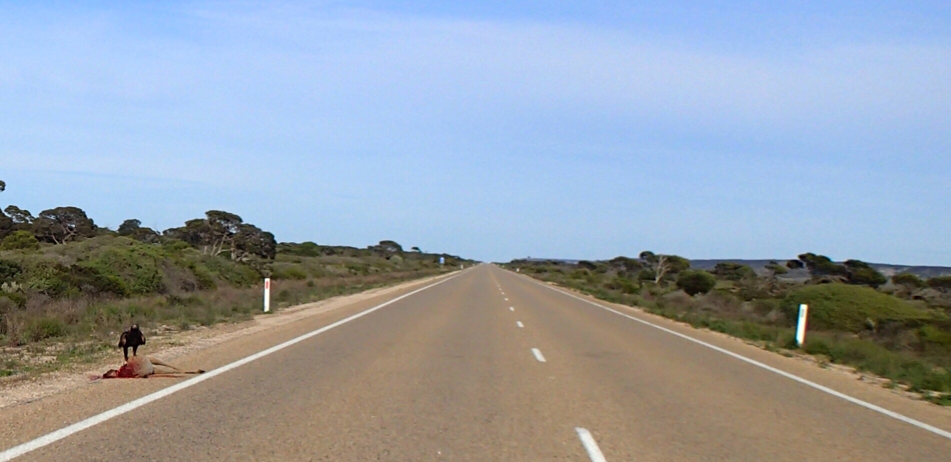 As we passed Penong we encountered a bit of active wild life and quite a bit of roadkill, namely wombats. However what sticks out in my memory are the couple of wombats wanting to get up close and personnel. I see Ed take avoiding action in front of me by taking a wide berth around something and as I arc around I see the little bugger running straight at me forcing me to extend the arc further to ensure that I miss him.