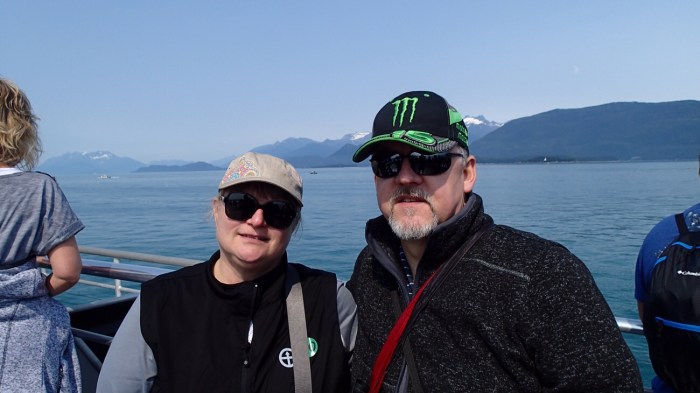 Today’s activity included whale watching – well technically we went for a nice boat ride around the beautiful harbour of Juneau, as the whales clearly didn’t get the memo. It was a bit disappointing not to get a better showing from the whales. We did see a small pod of Orcas and a single Humpback but they were just gliding passed.