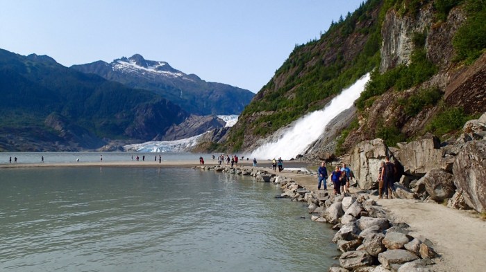 From the whale watching we went out to the Mendenhall glacier to have a walk out to it and have a closer look. It’s scary to think that when the visitors centre was opened in 1962 the glacier was up against building; now it is about a mile away from the centre.