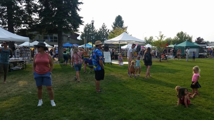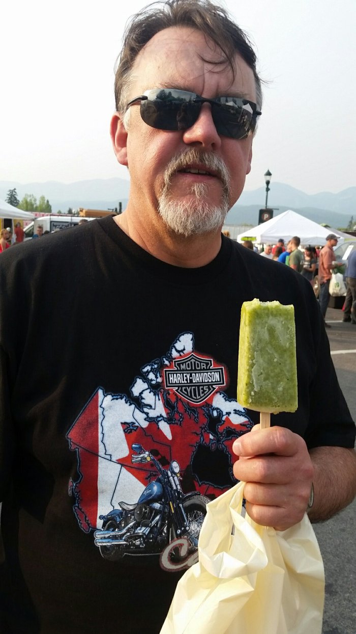 After walking the street and buying the obligatory fridge magnet we went foraging for food. A peek in lots of windows didn’t find what we were looking for but at the end of the street in the town park they had a farmers market with lots of great stuff. So we foraged around and came up with a couple of nice salads, some home made ginger beer, and a couple of locally produced icy poles (and a nice huckleberry pie to enjoy later with a cuppa). We sat on the grass with all the locals, enjoying the evening consuming our find.