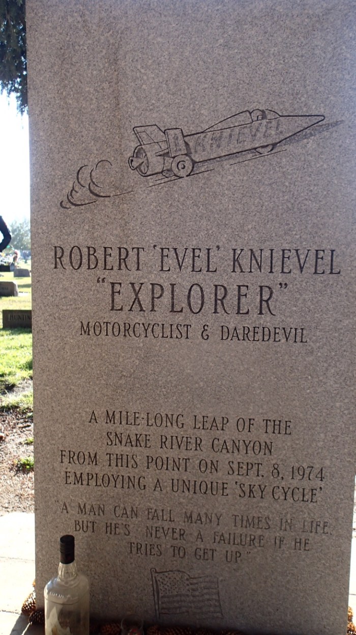 Our first stop this morning was in Butte Montana to pay homage to one of the great motorcycle legends in the US and the world. Butte Montana was the hometown and is the resting place of Evil Knieval. A name synonymous with motorcycle daredevils. I remember as a kid watching many of his feats with awe.
