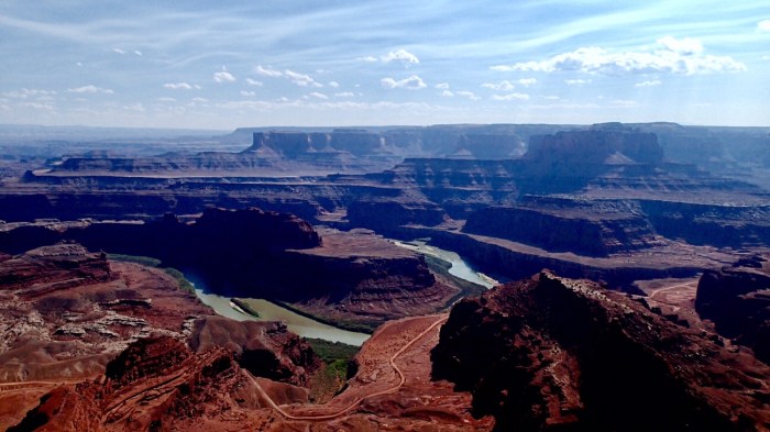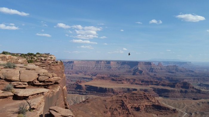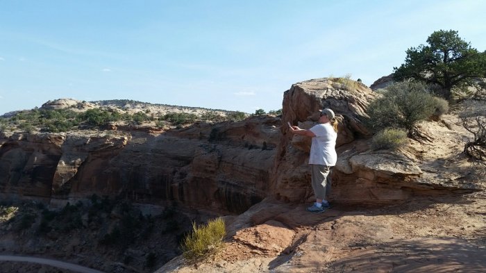 After our break we headed out to Dead Horse Point where you look down on a U bend in the Colorado river way down in the canyon. But sitting looking out on the canyon it just goes for miles and miles – you can see the land level around you and where the land has eroded around it. You can easily spend lots of time at these places just exploring all the nooks and crannies so we wandered around for a few hours taking it all in and clambering around the rocks – and getting too close to the edge for Deb’s liking!.