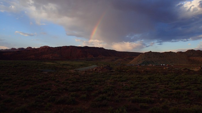 By this time it was getting onto lunchtime and we’ve had a big morning so we headed back to Moab and sat outside under misters in a coffee shop for lunch and then headed back to the motel for a couple of hours of rest before hading back out into the heat.