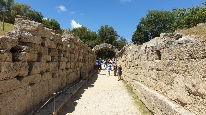 The entrance to the stadium was essentially through a tunnel and the stadium where various events took place, such as running (up and back rather than around), discus, and javalin.