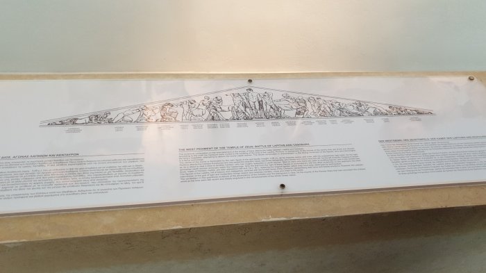 One of the structures was a temple to Zeus which included a huge statue of Zeus (over 9 meters high). And while the statue is no longer around (the resaon we know about it was from detailed desciptions of it from the period), the east and west pediments that sat on top of the columns have largely been preserved.