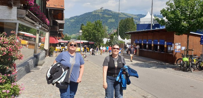 Our first coffee stop was in Gstaad which was gearing up for a big tennis tournament so there was lots of activity around town.