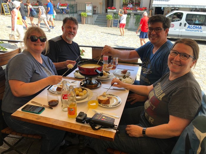 From here we made our way through a nice series of roads to Gruyère famous for its cheese fondue – and so it only seemed right and proper to try it out. And yes it’s very cheesey, but very tasty.