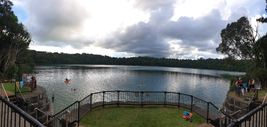 Crater Lake National Park – Lake Eachem is one of a couple beautiful lakes in the middle of an old crater. It appears that Lake Eacham is the most swimmer friendly as it has a nice foreshore and easy access to the water. But what you notice as you enter is that it gets deep quickly … take a few steps and the ground dissappeats very quickly. Apparently at its deepest its 200m deep.!