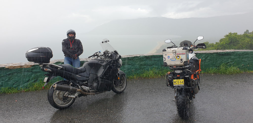 Tuesday morning rolled around and there is time to sneak in one more quick ride up the coast to Port Douglas before we have to be at the airport at 11am. Ten minutes from Cairns and we were in the middle of a huge down pour, up here at this time of year it’s too hot to wear plastic over gear so you welcome the refreshing cooling rain. Sitting enjoying my breakfast of poached eggs at Ellis Beach we are soaking wet, jeans are drenched, my boots are squishy as they are full of water, and I’ve got pruning hands from wearing wet gloves. By the time we rolled back in the garage we only had a bit over an hour before we had to leave for the airport so there was little time to dry anything off so most of my gear is packed wet for the trip home.