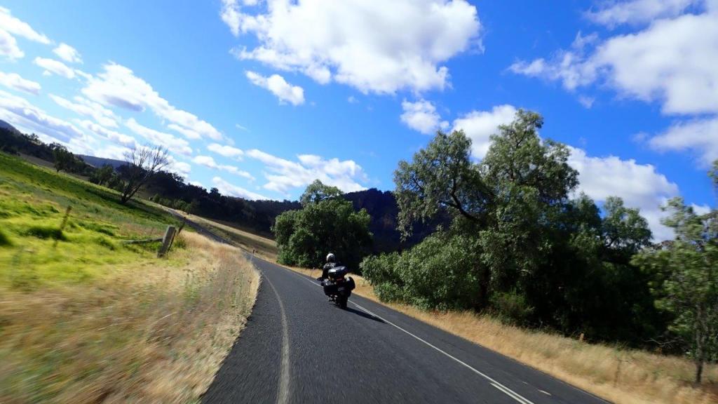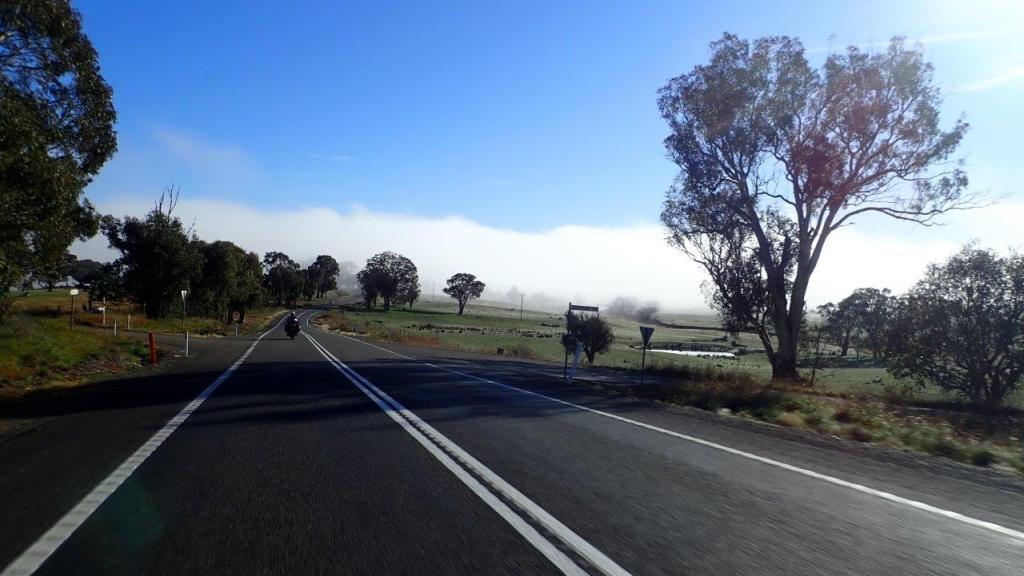 Meeting up with Russell at Sutton at around 8:30am we headed to Crookwell enveloped in thick fog. With the sun in our eyes and fog blocking out everything else … making visibility difficult, slowing our progress. Seeing the road really isn’t over-rated.! Today’s ride will take me to Bathurst, along the Bylong Valley Way where I will bid Russell farewell and I head home via the Putty into Sydney and then durge home the last 300km in the dark on the Freeway.