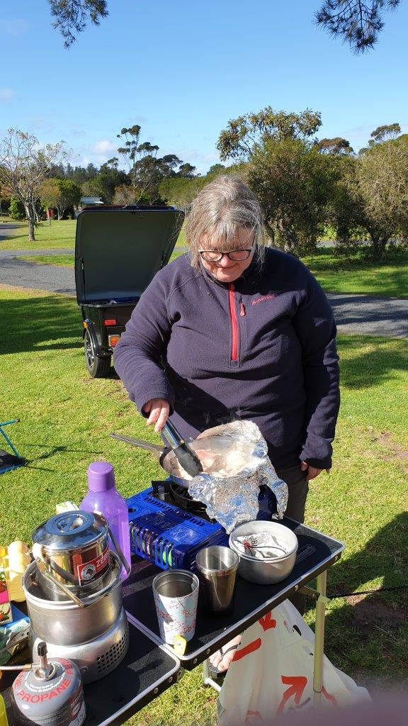 For cooking the only thing we supplemented my little Trangia gas setup with, was a cheap single gas burner and we grabbed a saucepan (we didn’t use) and fry-pan from the kitchen.