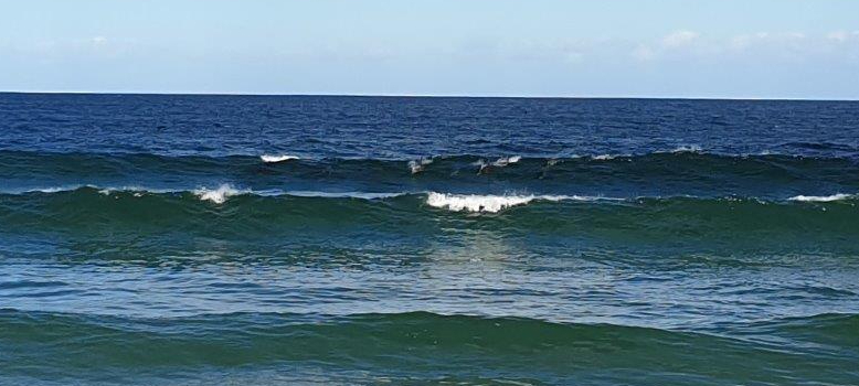 Dolphins riding the waves