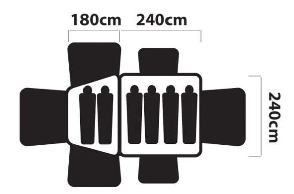 - Floor space: 240 x 240cm