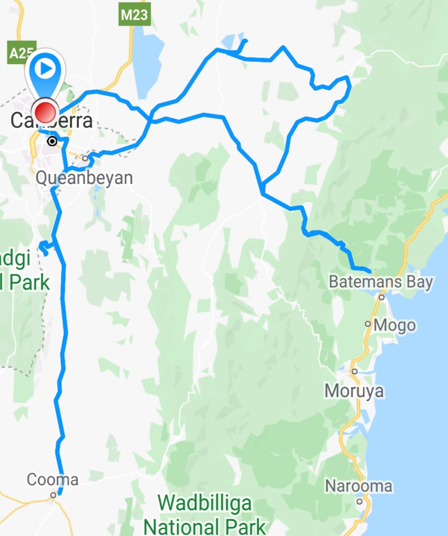 We decide to still head out for a ride – albeit 3 hours late – but not our original plan. We’ll ride to Cooma and then pick a direction …