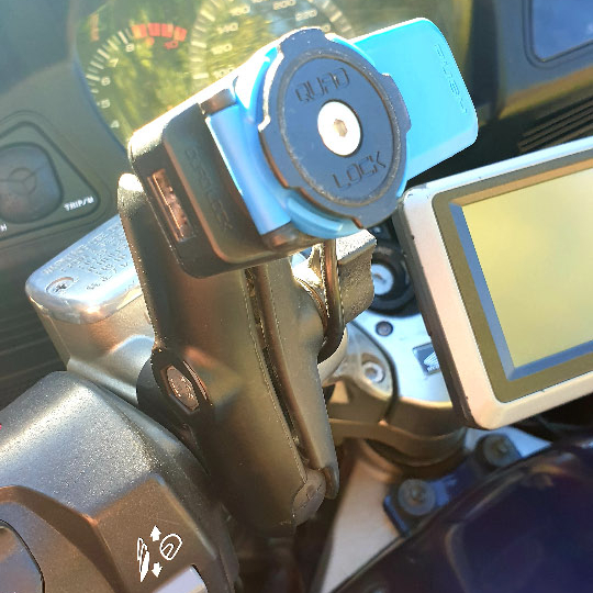 I have wired the Quadlock USB adapter straight to the battery so in addition to charging my phone I can also leave something plugged in (such as helmet comms) charging while the bike is turned off and we are off having lunch or coffee in a nearby cafe.