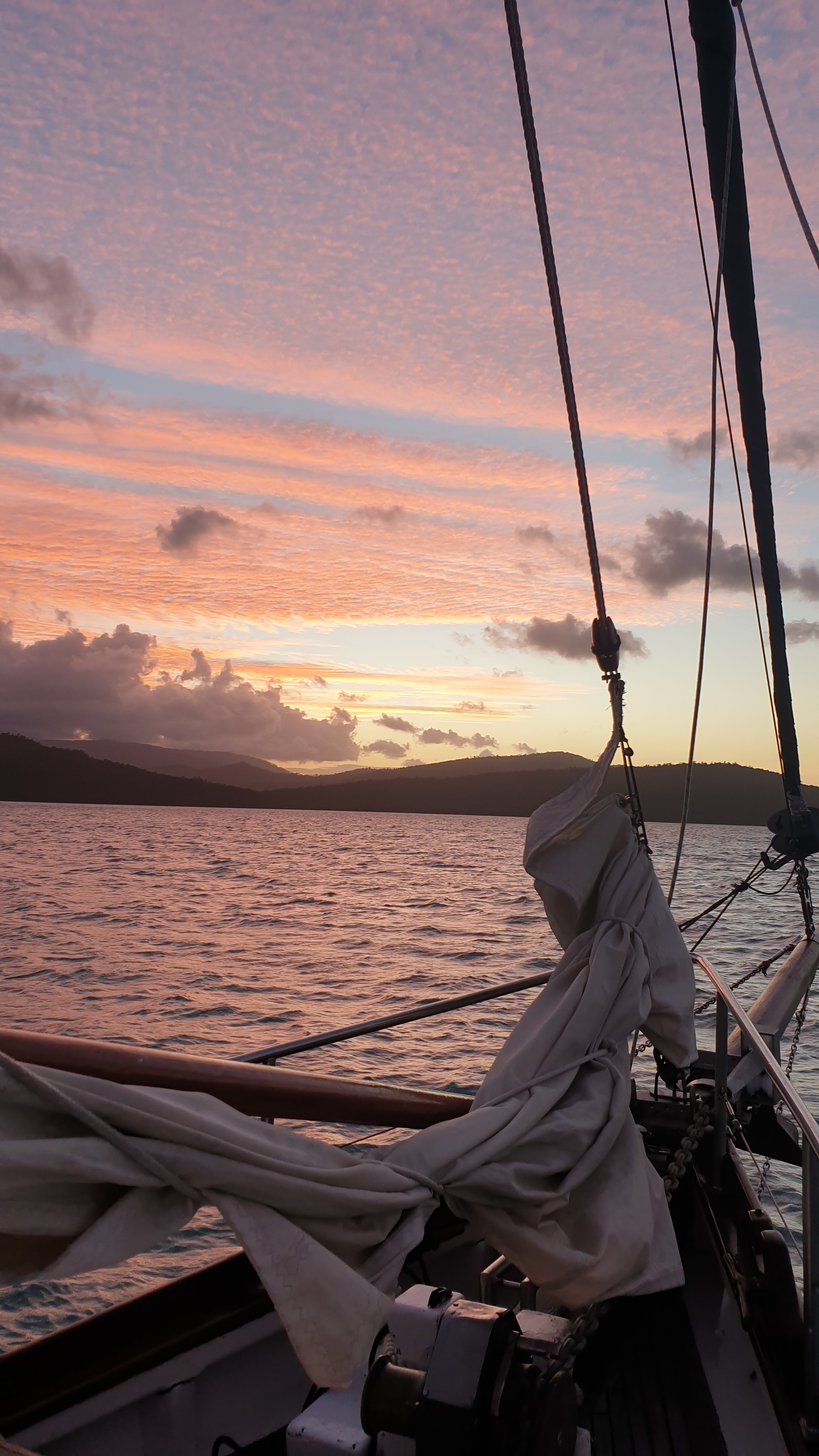 It seemed the perfect end to the day – sails up and another beautiful sunset. A great way to end the day.