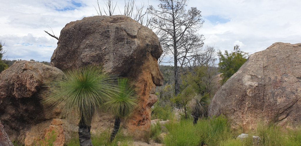 From Inverell we did a day trip to see another rock formation in the Torrington National Park just west of Deepwater called Mystery Face. From the car park it’s just over a 2km walk (round trip). A nice walk in recovering fire affected bush and over huge granite boulders. Glad that the path was well marked as you could get disorientated quite easily.