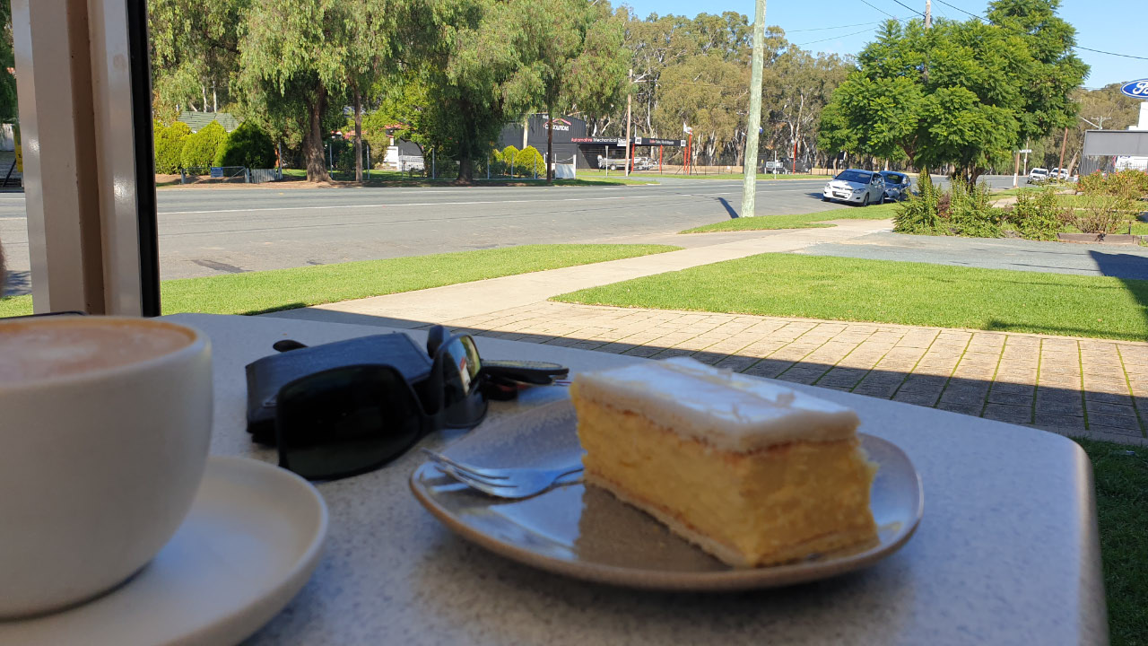 By Deniliquin it was time for our morning coffee at the local bakery. I realised as I sat with my coffee and vanilla slice … I’m over vanilla slices. I think I’ve had so many ordinary ones that I just can’t do it any more. I looked over the table and Ed had a Danish which looked very nice, mmm danish.