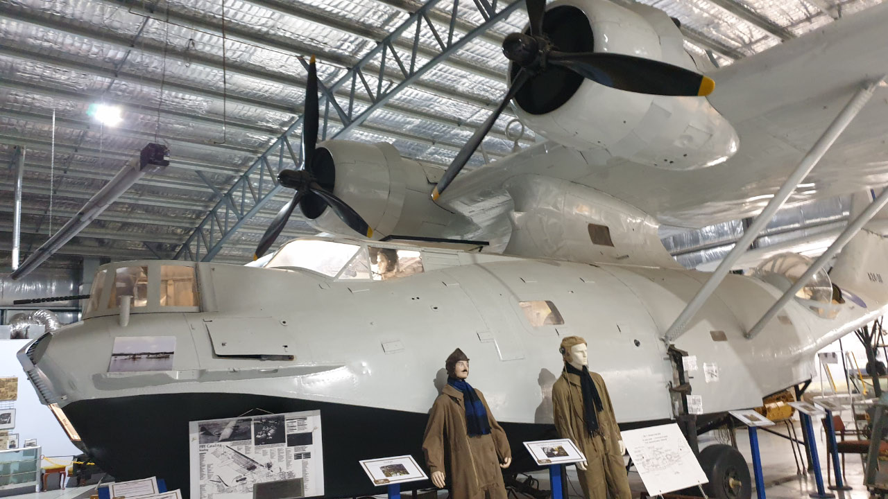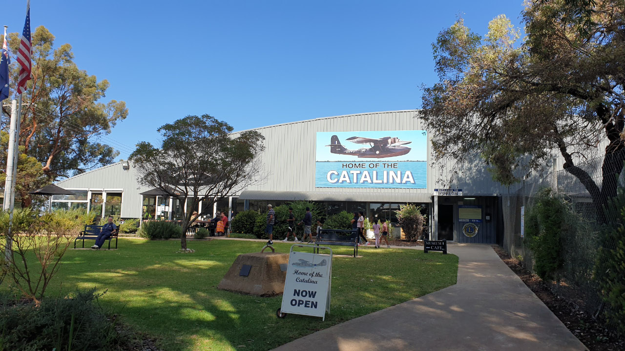 The Catalina museum was created by the local Lions club and was officially opened in 2012 as a memorial to the service men and women who had been stationed at the Flying Boat Repair Depot at Lake Boga during World War II. The museum is built around a restored Catalina and includes a large number of artefacts from fully restored radial engines to objects found at the bottom of the lake over the years.