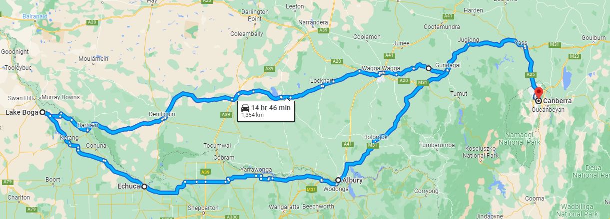 Unsurprisingly we spent too much time sitting and catching up over lunch and wandering around the museum intrigued by these curious boats / planes that don’t seem that big but have a huge wing and huge engines, but are quite slow. By the time we left Lake Boga we had less than a couple of hours light left so we opted to head east to Albury and then slab it back up the Hume.