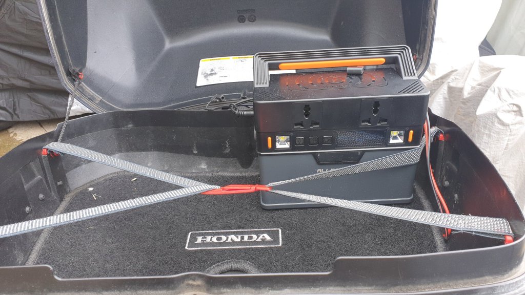 - single night camping (stop overs) the small power station really wasn’t a problem as I only needed enough power for one night and I could charge the power station in the bike’s topbox during the day as we rode.