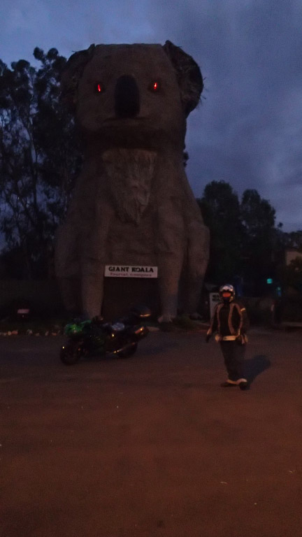 The last time we rode through Dadswell it was dark and the Giant Koala was pretty freaky with glowing red eyes so I thought I should get a day-time photo. And whenever I see this I always think of the classic Australian road trip movie ‘Charlie and Boots‘, with a couple of Australia’s great comedians.