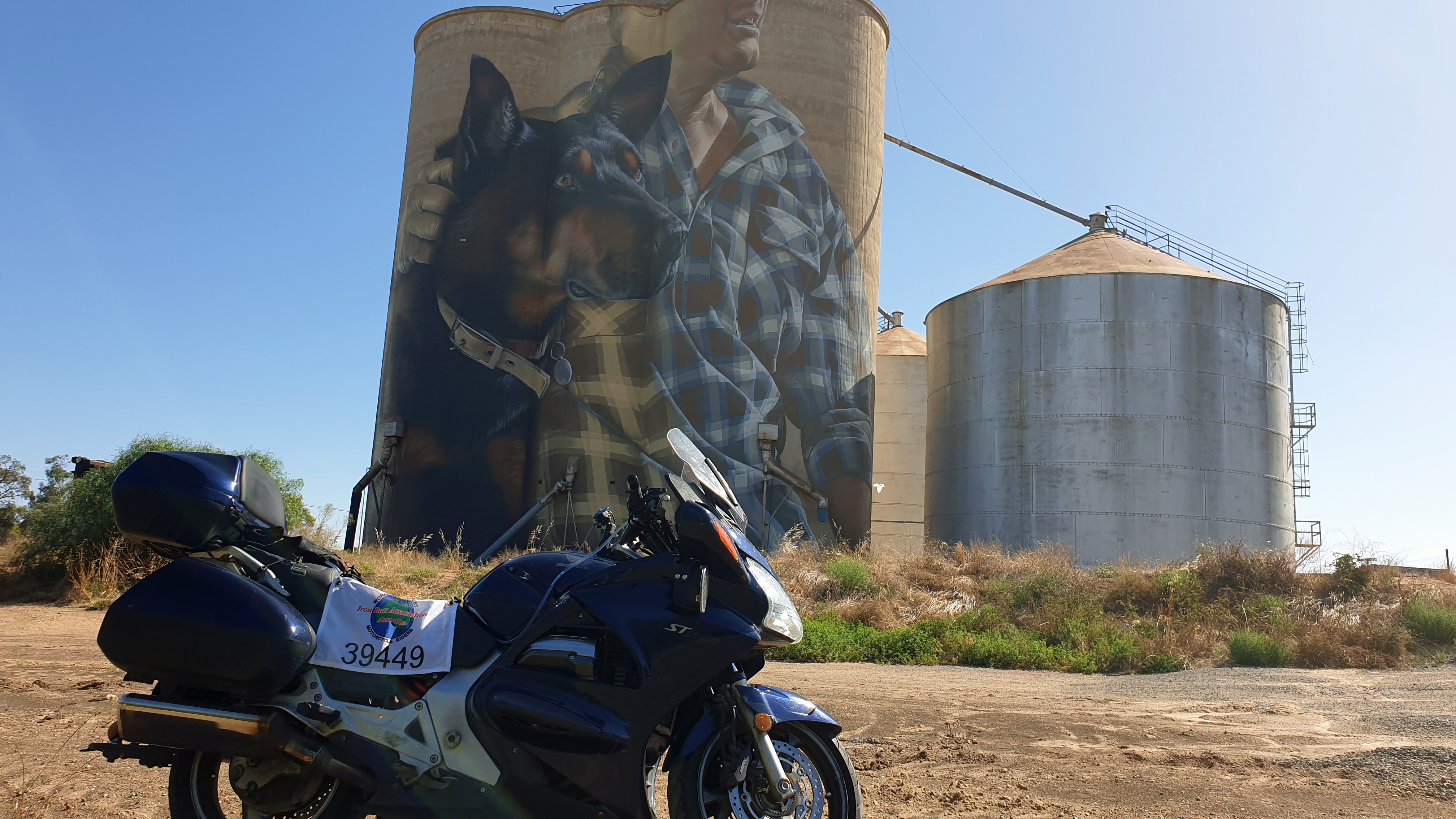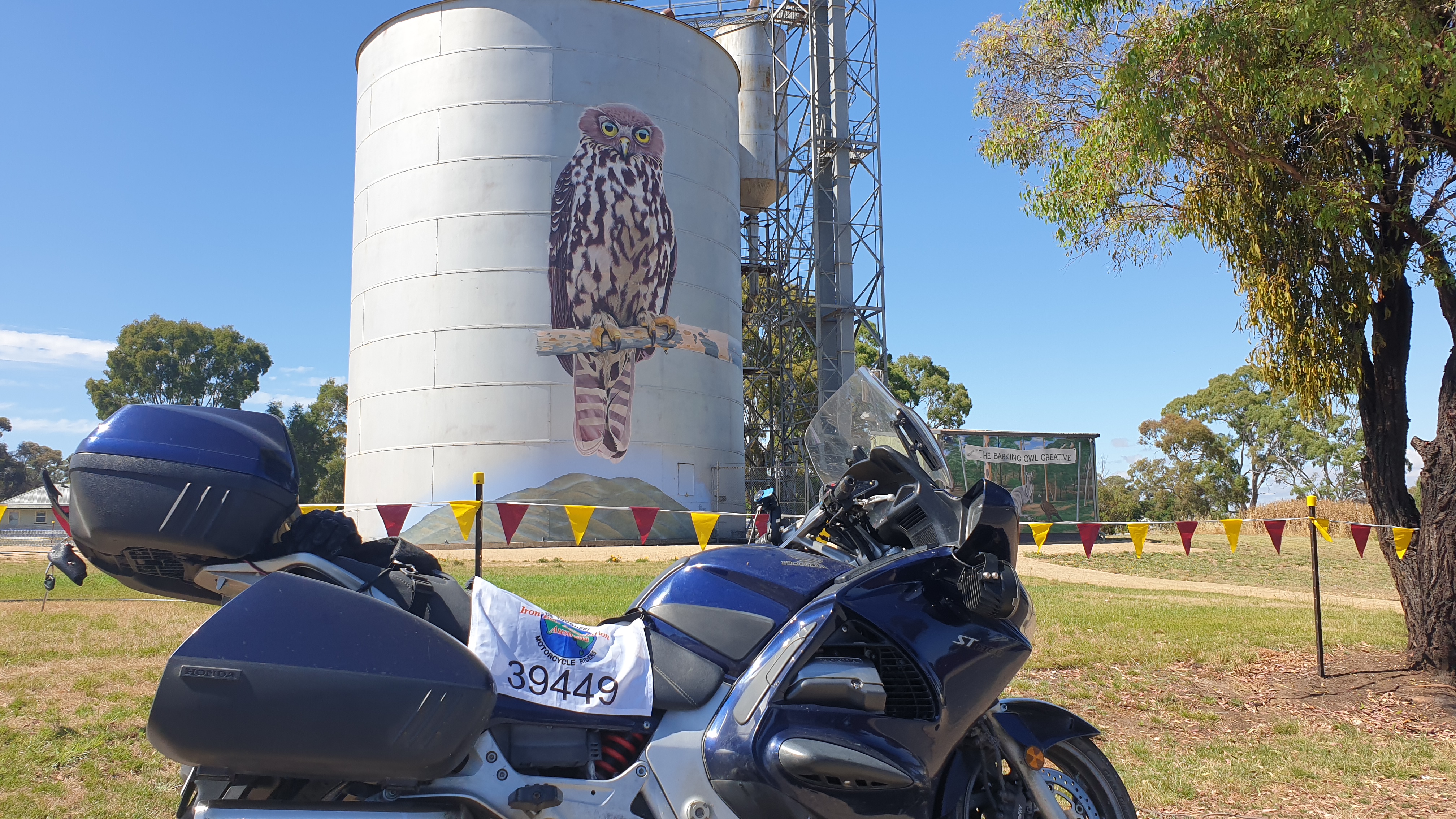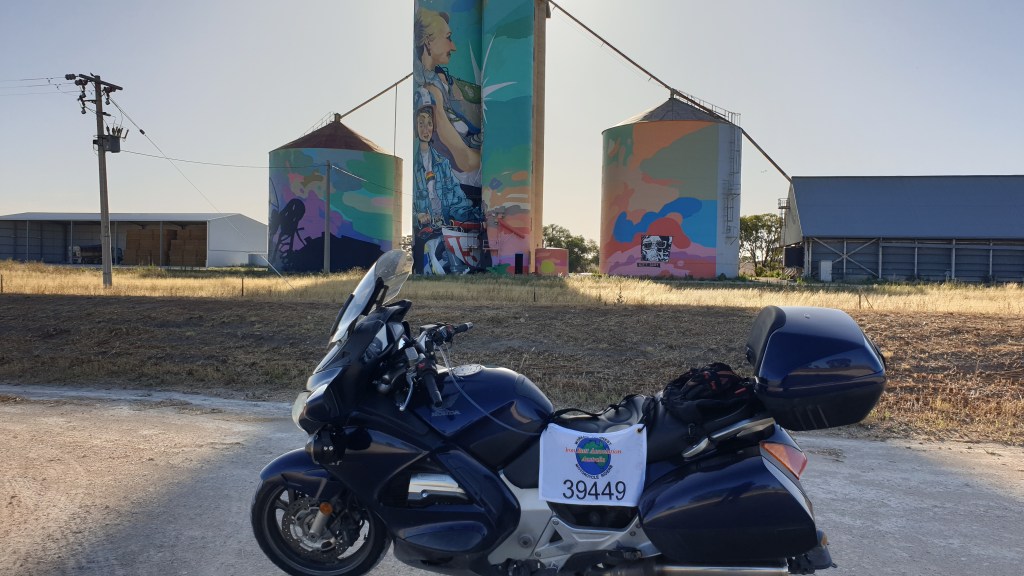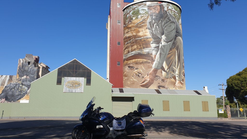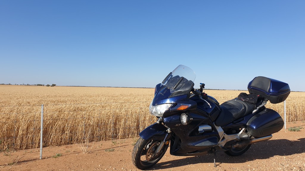 Rolling into Balranald I turn south and head for Victoria. This is an area I really haven’t ridden in before and with a farming background I’m always interested in the farm enterprises and what is cropped from large pistachios plantations out of Tooleybuc to large wheat crops being harvested. And with all this harvesting underway there was a lot of semi trailers moving around the back roads transporting grain that I was riding on. My rule – if a b-double is coming at you on a narrow single tar road – back off and get off the road.