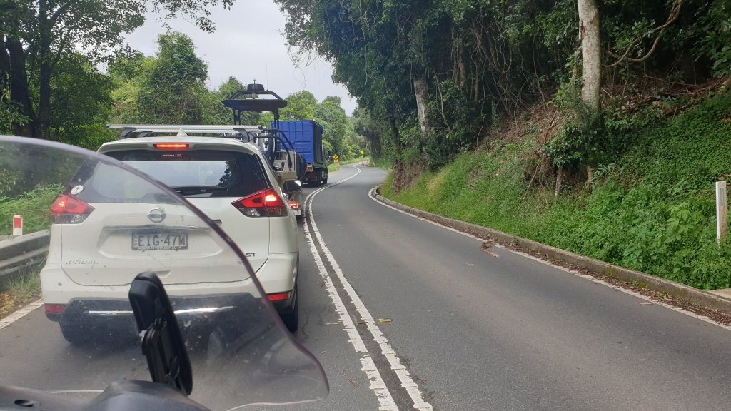 The mountain pass was slow as there is still a lot of road works going on after a number of landslides following heavy rain over the last 12 months. With roadworks comes traffic signals and bunched up traffic which is nearly impossible to sneak to the front when towing a trailer. So we just sit and wait like everyone else … except they have air-conditioning. By the time we roll off we are quite toasty.!