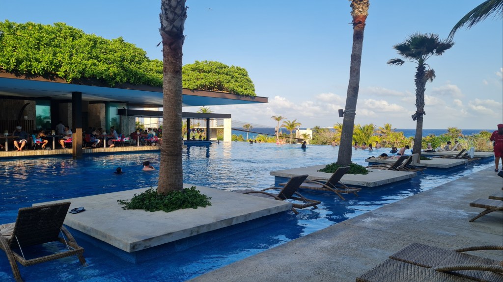 Another day, another flight, and we are in Cancun Mexico, ready for a week of … fun, swimming, exploring, and relaxing. Walking into the Xcaret Resort and the swimming and relaxing part are well and truly covered.