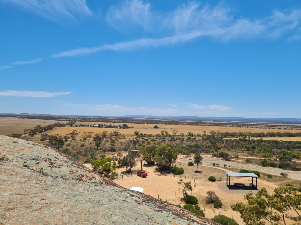 Today was largely a day to get miles under our belt. Our only real detour was out of Minnipa to Pildappa Rock, which is about 10km out towards the Gawler National Park. It’s a mini-wave rock and from the top, you can see for miles in all directions.